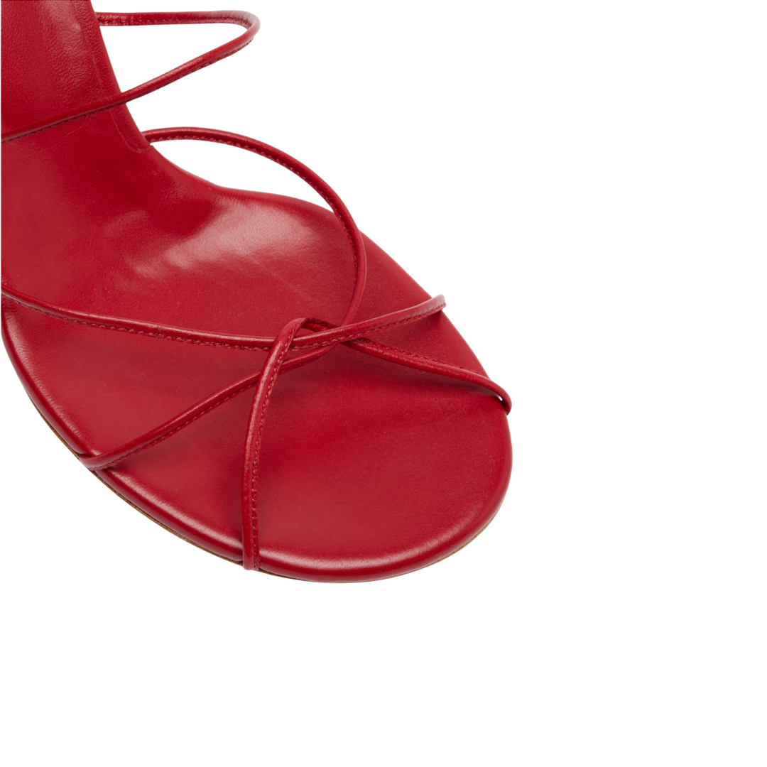 Set atop a 70mm flared heel, these strappy sandals are crafted in Italy from Lamb Leather. Designed with fine buckle detailing and intricate multi straps finished by hand.