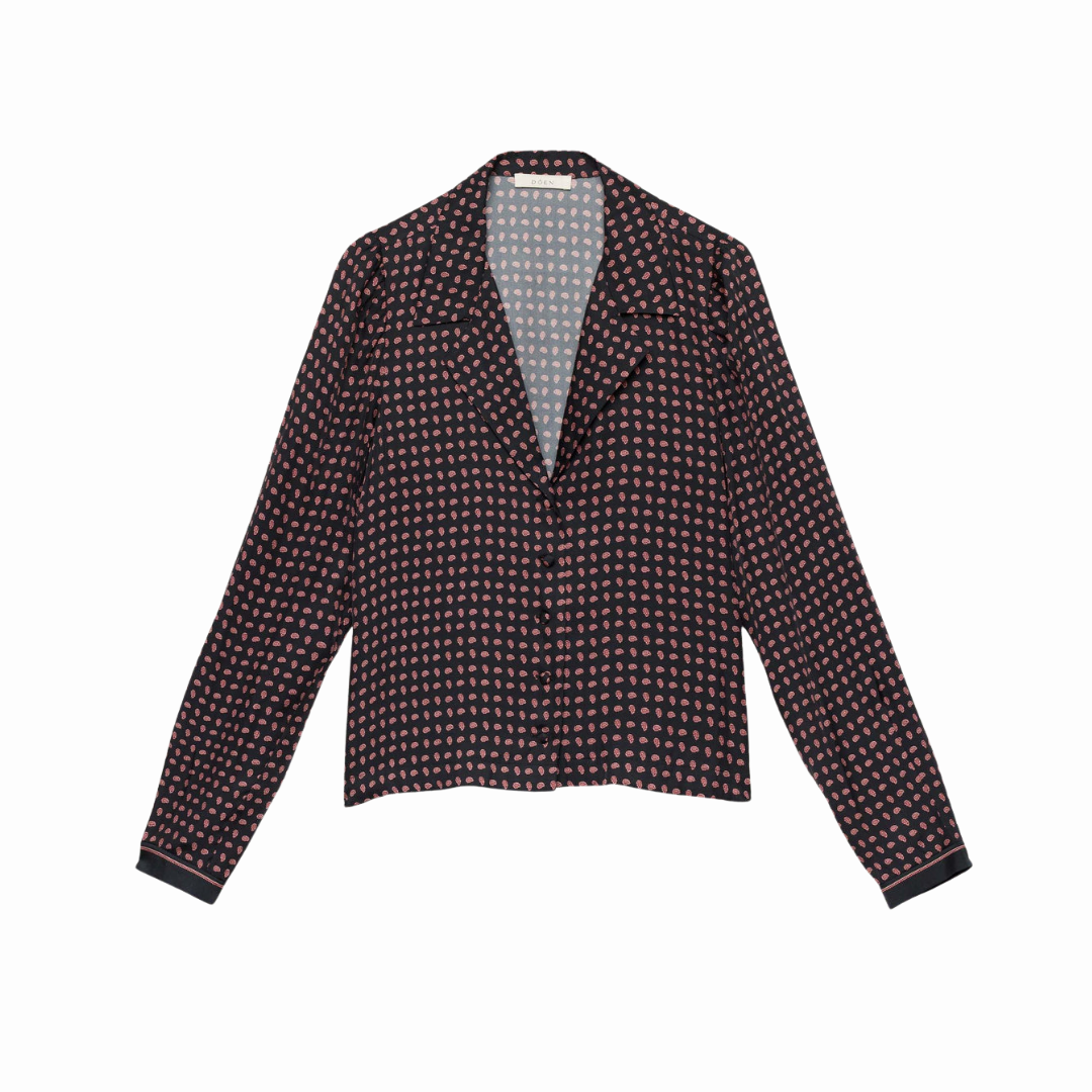 Reimagined for Fall in our ‘60s-inspired Cardinale Foulard print on silk-viscose twill, the Juliana Top features a notched collar, a fitted silhouette, and straight, full-length sleeves finished with placed borders. Side slits at the hem lend ease of movement, while self-covered buttons extend down the front.