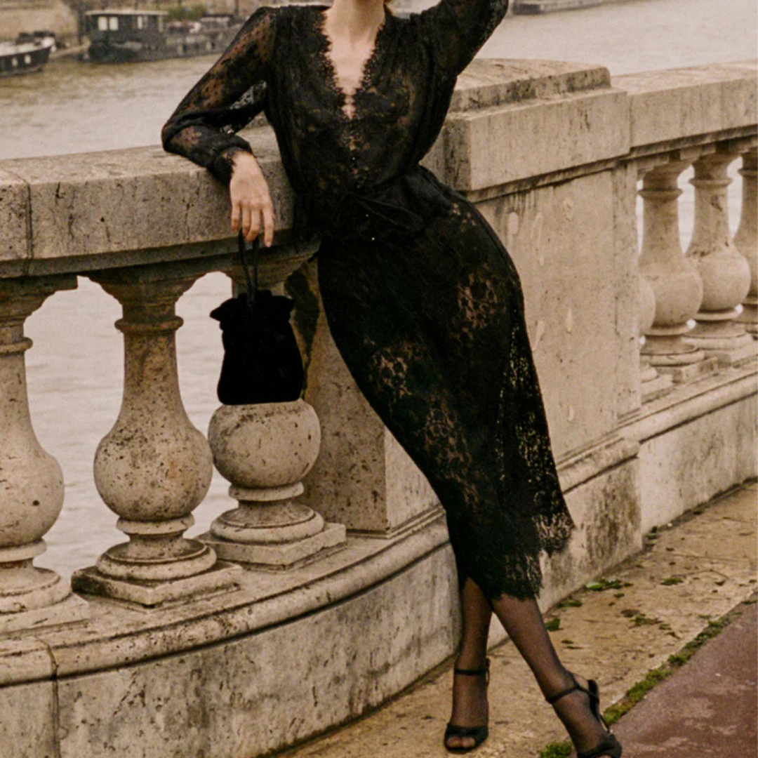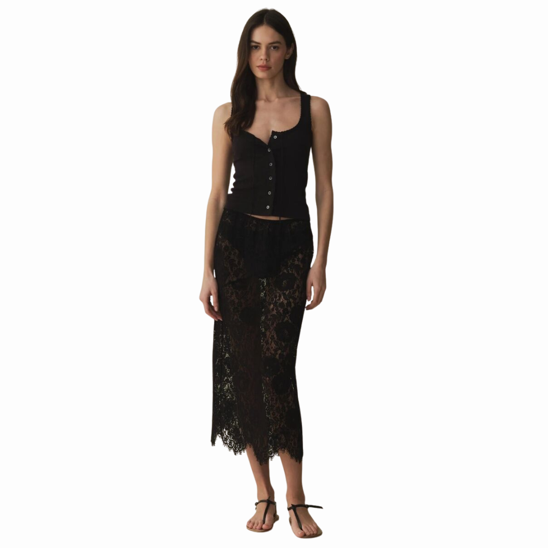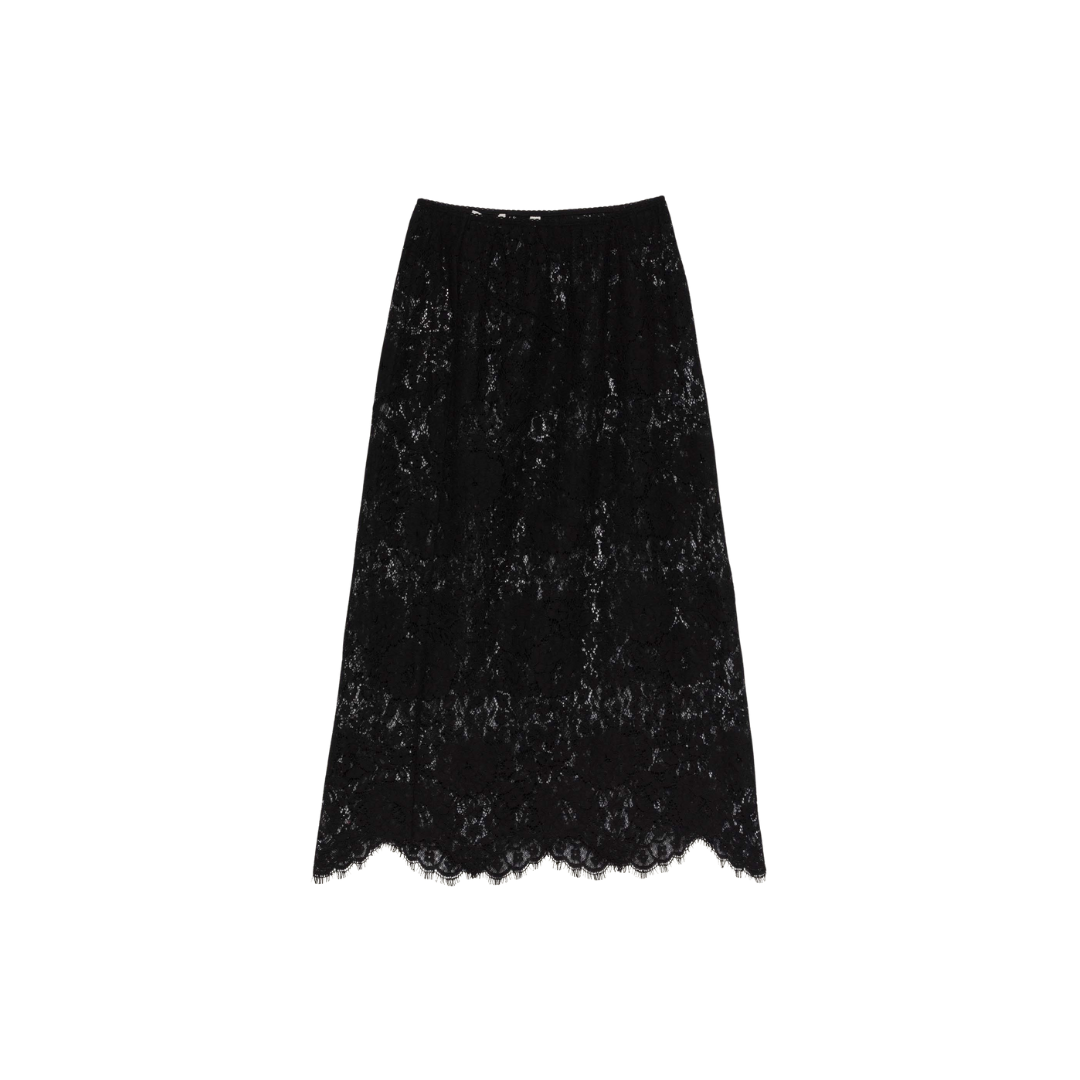 In an intricate allover lace, the Nandi Skirt—a favorite of Doen’s co-founders Margaret and Katherine—features ‘30s-inspired seam details, scalloped elastic at the waist, and an uneven hemline.