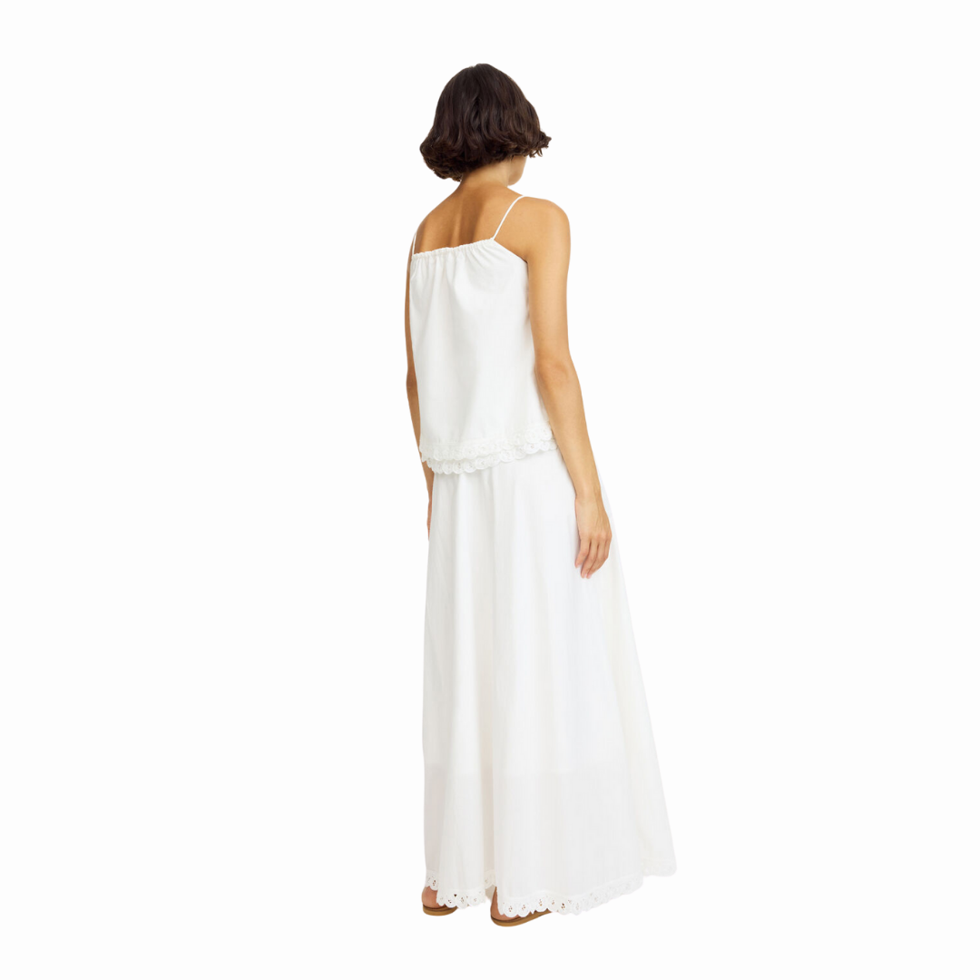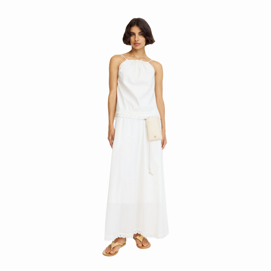 A favourite as the temperatures rise, the Elle top is a must in any bohemian edit. Made from organic cotton, the short design has thin straps that ties at the chest, made to fit your shape. The hemline is detailed with the season’s noteworthy bohemian lace.