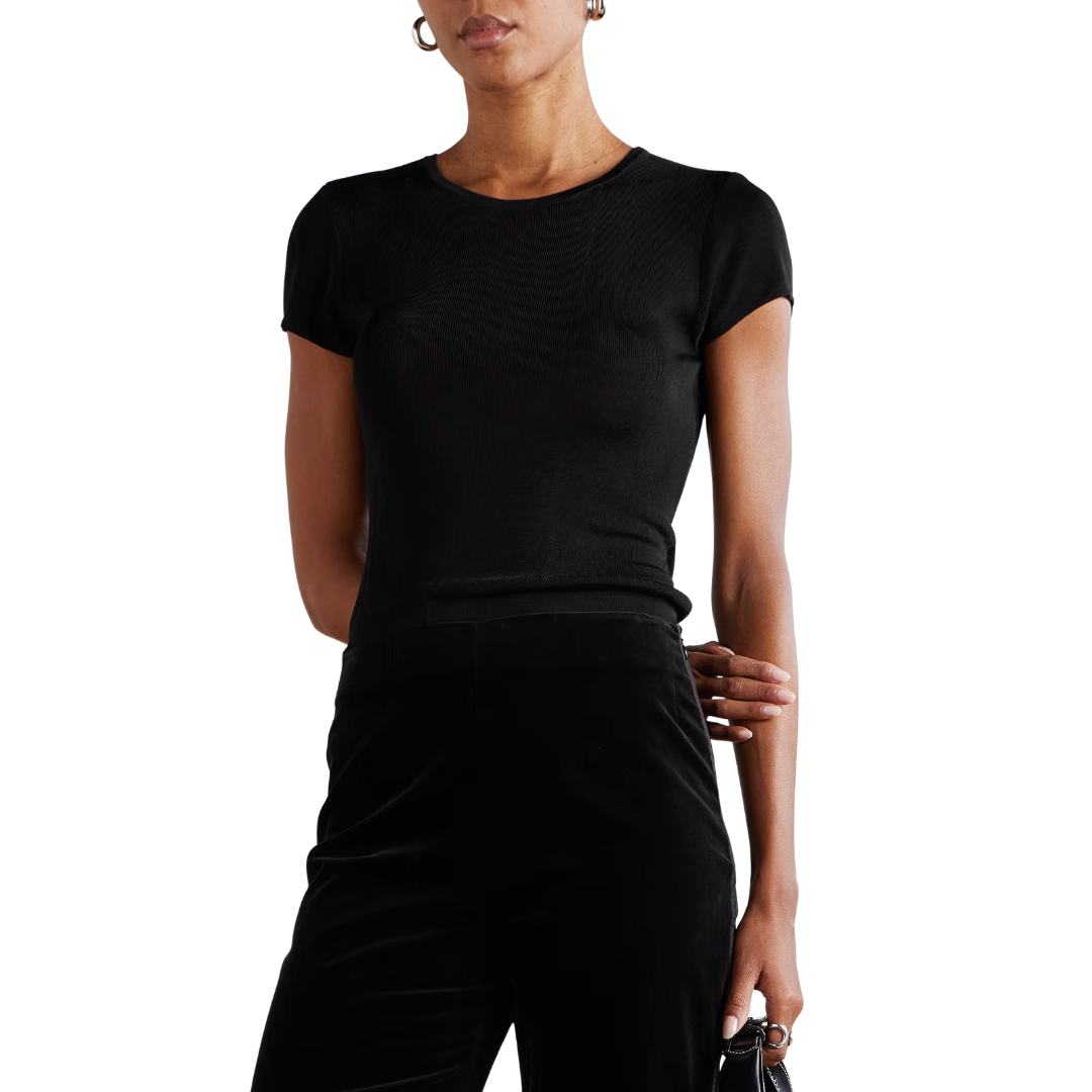 The Birdie Tee is crafted from a lightweight viscose knit and cut in a classic baby tee silhouette. Designed for a close to the body fit, this semi-sheer style is the perfect layering piece.