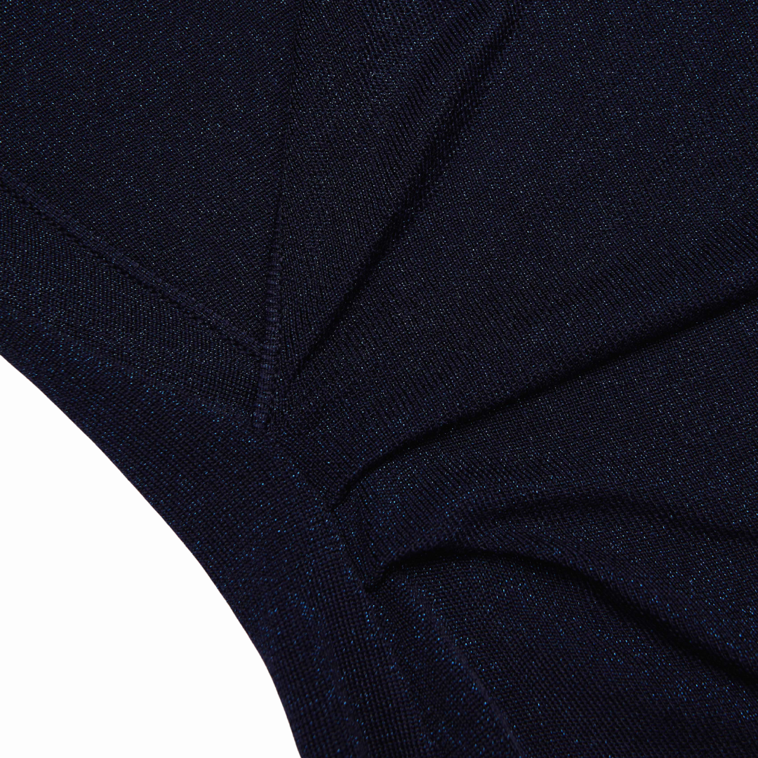 Sleek, sheer and slinky, this viscose knit dress stuns in all the right places. A high neckline and removable shoulder pads craft an elegant silhouette – wear with heels for late night adventures.