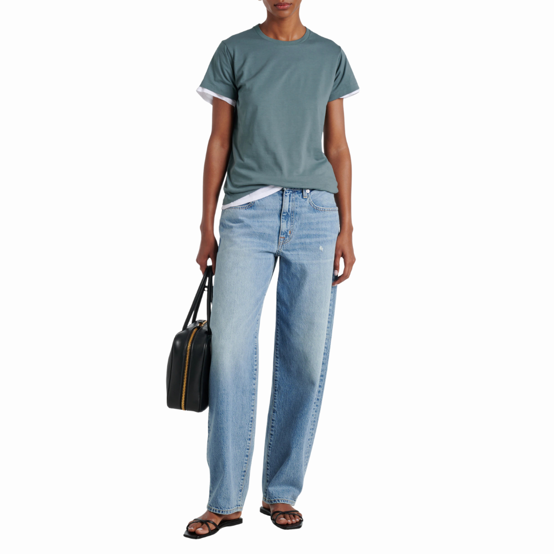 Ella features a relaxed body and curved leg with a mid-rise waist, offering an effortless yet refined fit.