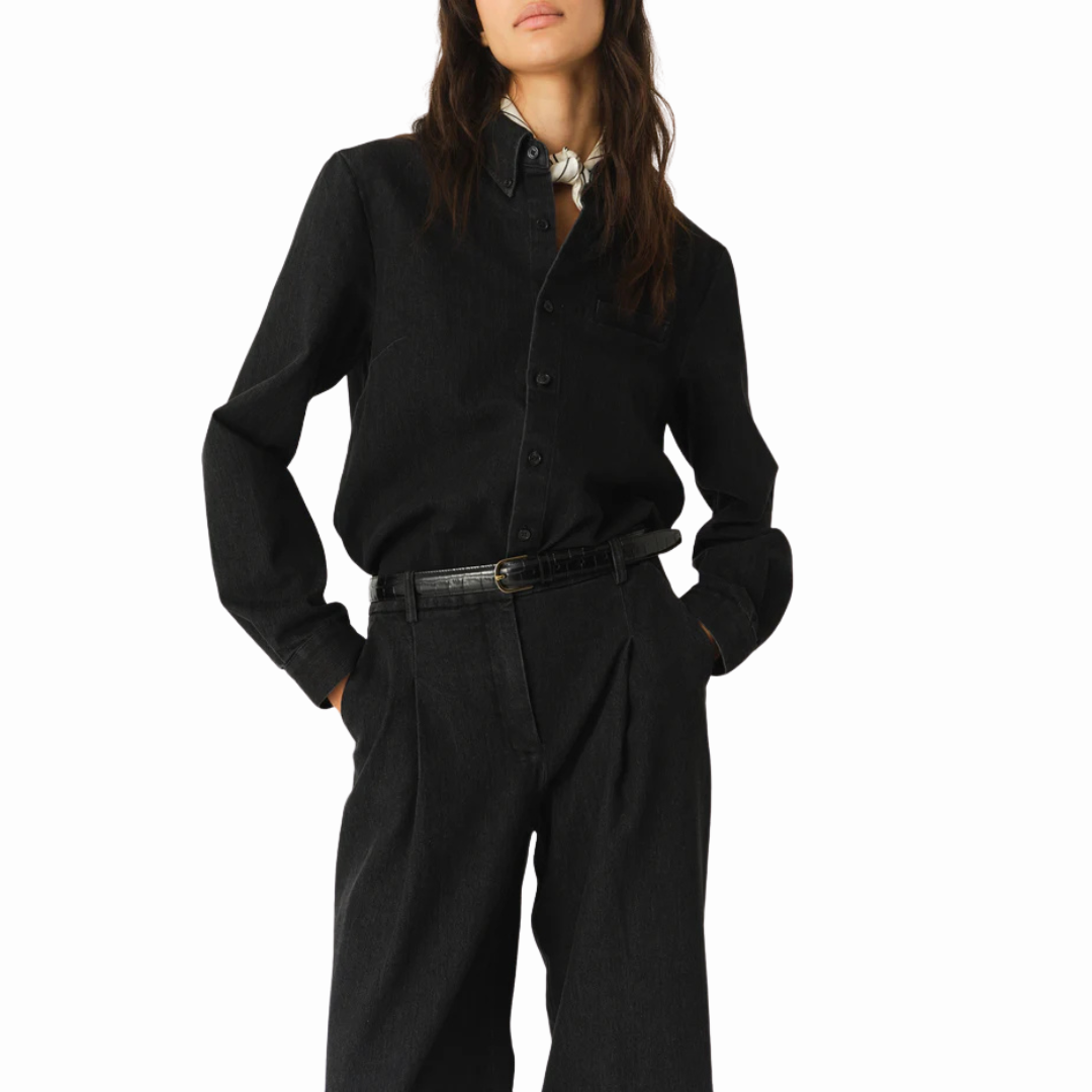 THE MERCI PLACKET SHIRT COMBINES A CASUAL DENIM OPTIC WITH EFFORTLESS CHIC. IT FEATURES A STRUCTURED COLLAR, BUTTON PLACKET AND A CHEST POCKET DETAIL.