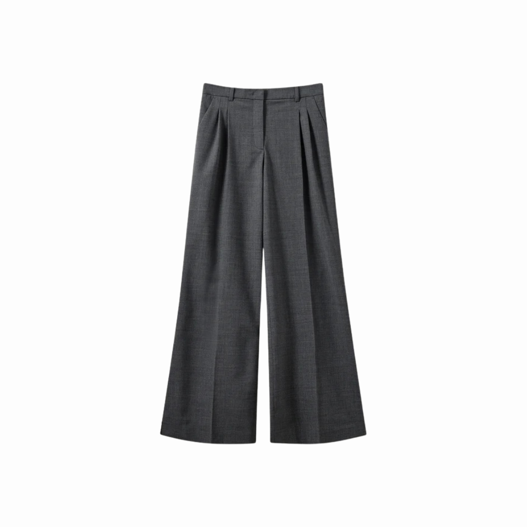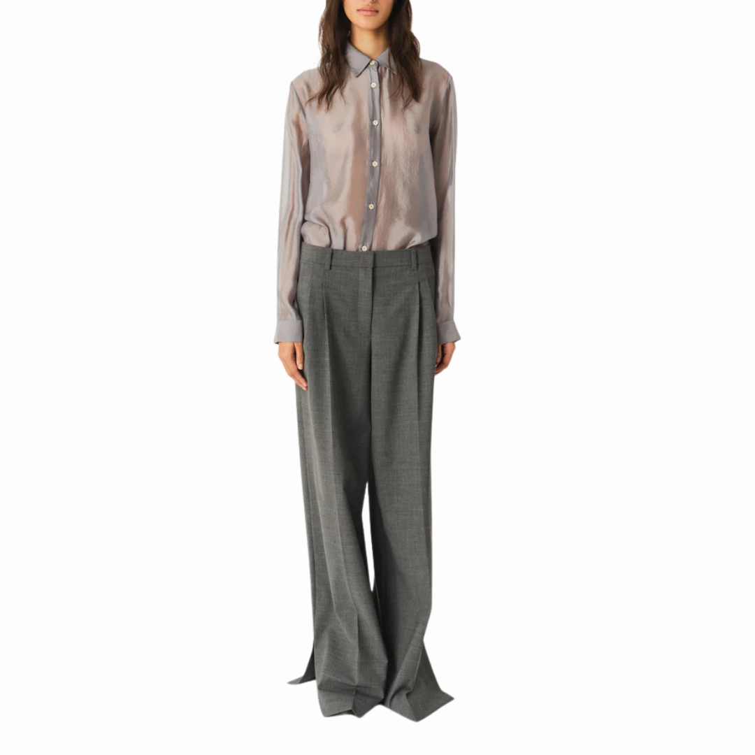 THE GRAND PANTS ARE HIGH-WAISTED TAILORED TROUSERS WITH WIDE LEGS AND SUBTLE SIDE SLITS AT THE HEM.